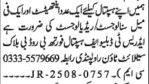 Private Hospital is looking for candidates for following posts as per job advertisement published in daily Jang Newspaper of September 1, 2025 for location Satellite Town Rawalpindi, rawalpindi Punjab Pakistan: