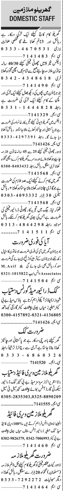 Jang Sunday Classified Ads 31 Dec 2023 For House Staff