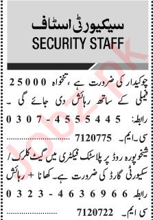 Latest Security Company Security Posts Lahore 2025