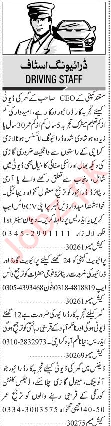Jang Sunday Classified Ads 31 March 2024 For Driving Staff