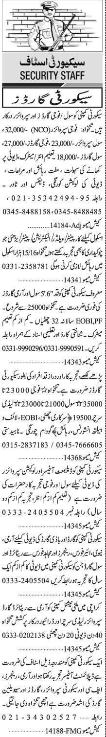 Jang Sunday Classified Ads 31 Oct 2021 for Security Staff
