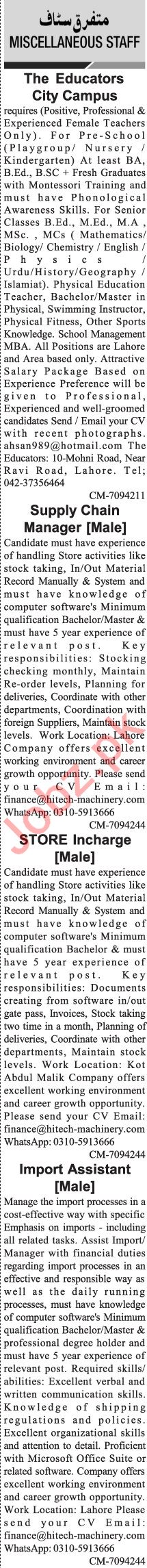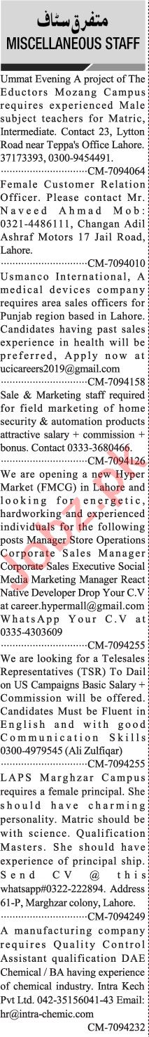 Jang Sunday Classified Ads 31st Jan 2021 For General Staff