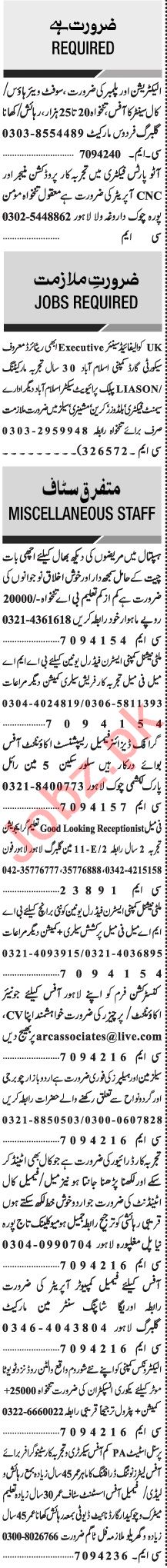 Jang Sunday Classified Ads 31st Jan 2021 For General Staff