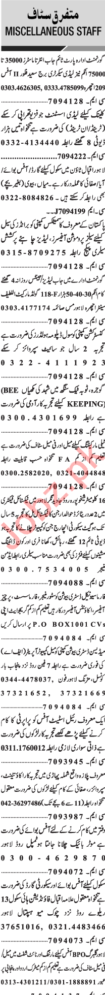 Jang Sunday Classified Ads 31st Jan 2021 for General Staff
