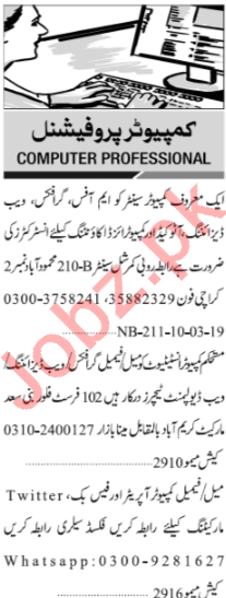 Jang Sunday Classified Ads 31st March 2019 for IT Staff