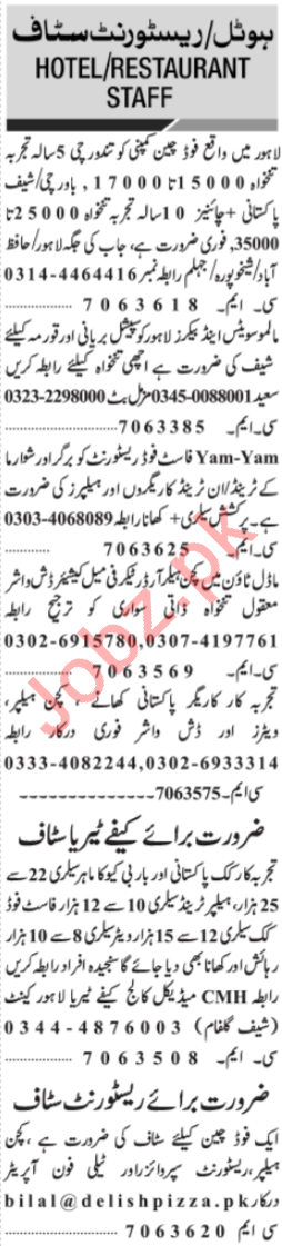 Jang Sunday Classified Ads 31st March 2019 Restaurant Staff