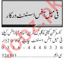 Jang Sunday Classified Ads 3rd Jan 2021 for Office Staff