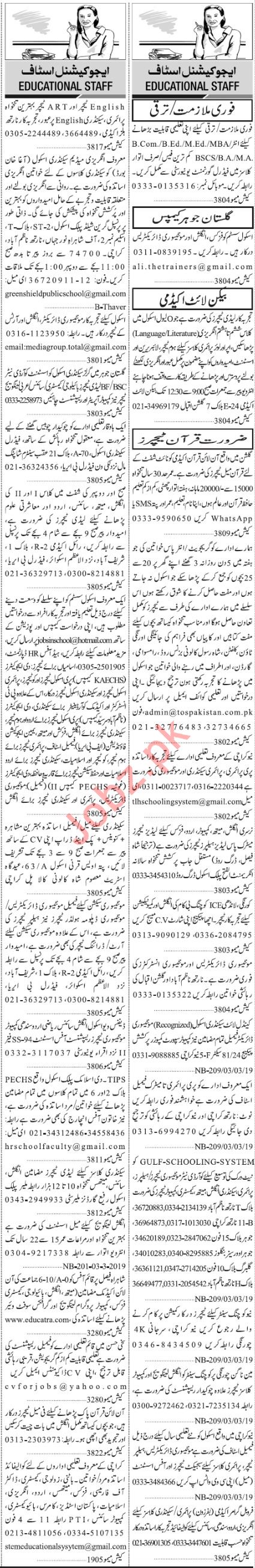 Jang Sunday Classified Ads 3rd March 2019 for Teaching Staff