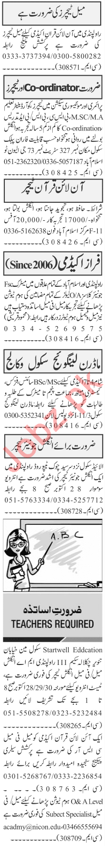 Principal, Vice Principal, Coordinators, Teacher, Junior Teacher, Primary Teacher, Secondary Teacher, Subject Teacher (Maths, Physics, Chemistry, Biology, English, Urdu, Pak Studies & Islamic Studies), Montessori Teacher and Female Teacher seeks in well result oriented schools.