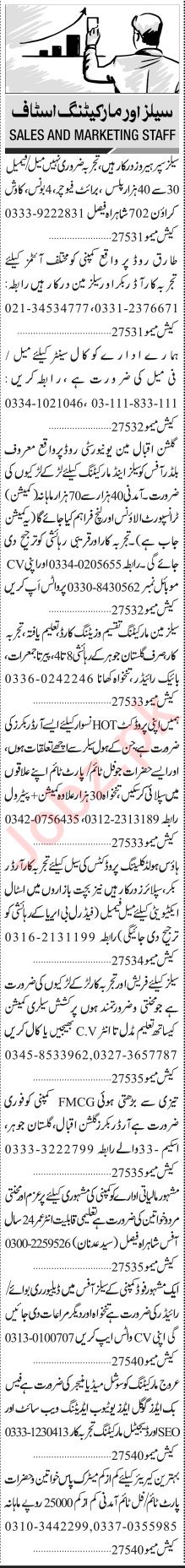Jang Sunday Classified Ads 3rd Sep 2023 for Sales Staff