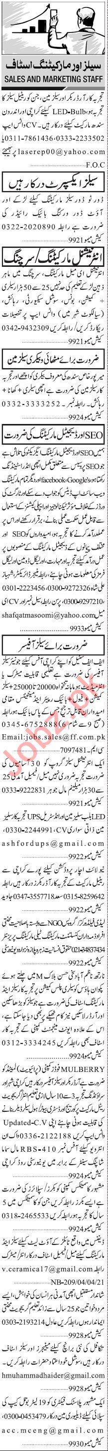 Jang Sunday Classified Ads 4 April 2021 for Sales Staff