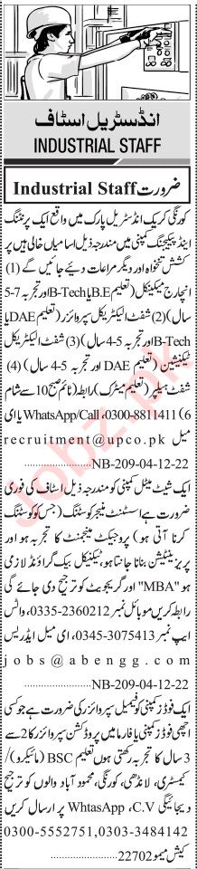 Jang Sunday Classified Ads 4 Dec 2022 For Factory Staff