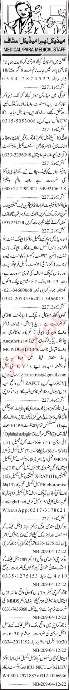 Jang Sunday Classified Ads 4 Dec 2022 For Medical Staff