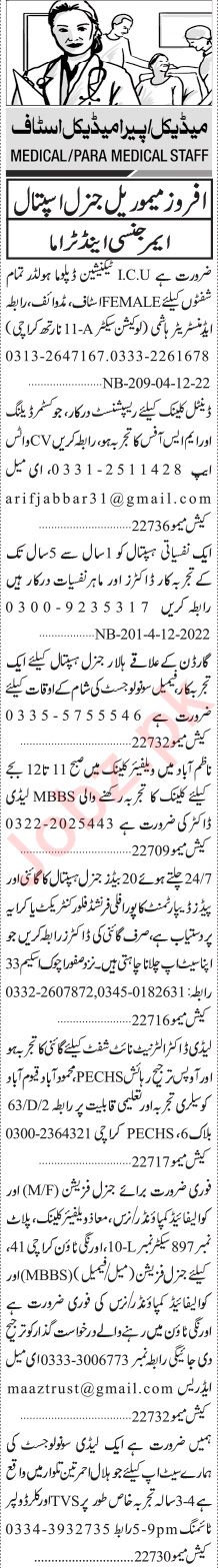 Jang Sunday Classified Ads 4 Dec 2022 for Paramedical Staff