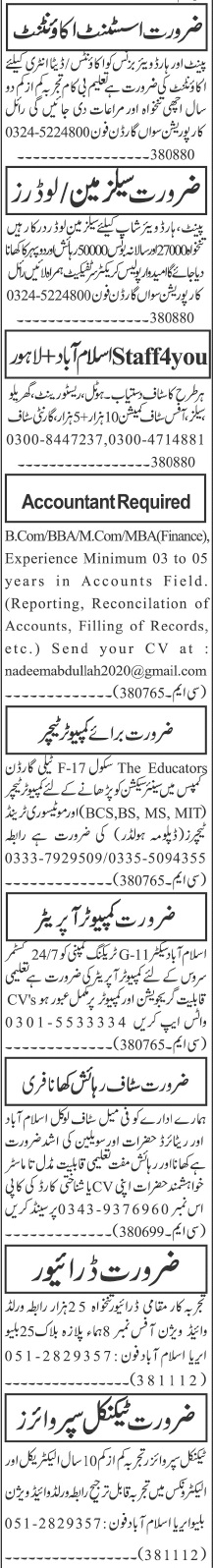 Todays New Jobs in Islamabad