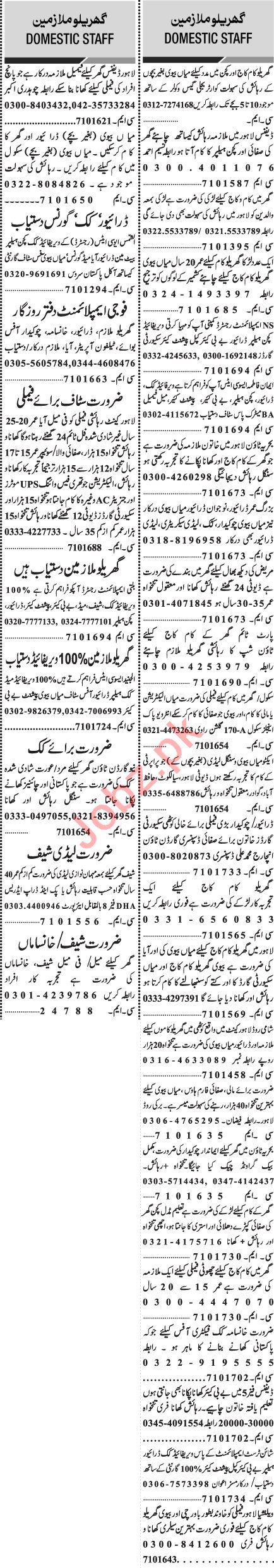 Jang Sunday Classified Ads 4 July 2021 for Domestic Staff