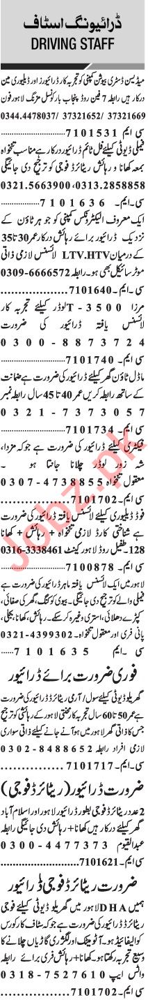 Jang Sunday Classified Ads 4 July 2021 for Driving Staff