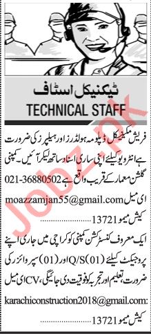 Jang Sunday Classified Ads 4 July 2021 For Technical Staff