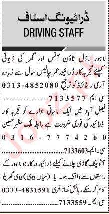 Jang Sunday Classified Ads 4 June 2023 For Driving Staff