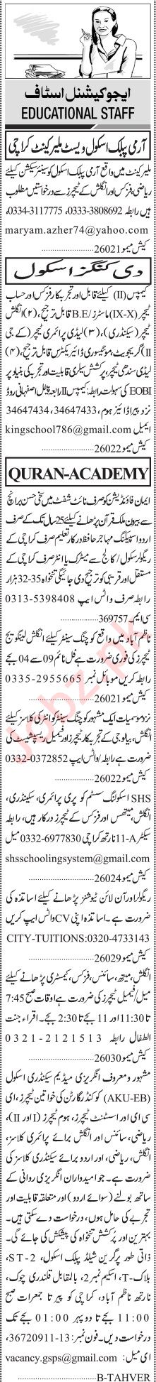 Jang Sunday Classified Ads 4 June 2023 for Educational Staff