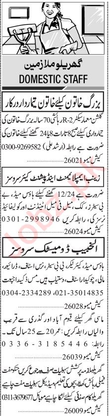Jang Sunday Classified Ads 4 June 2023 For House Worker