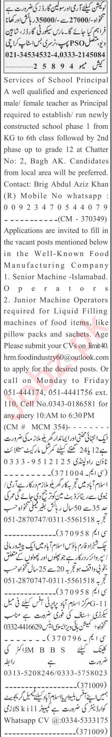 Vacant posts including diesel mechanic, office boy, mechanical engineer, house worker, house maid, salesman, lady doctor, female receptionist, delivery rider, sales marketing officer, machinery incharge, quantity surveyor, hydraulic mechanic, office staff, side supervisor, plumber, cctv operator, accountant, doctor, press man, female office receptionist, dispenser, chef, receptionist, office assistant, cook, mbbs doctor, sales staff, office manager, driver, washer man, counter man and lhv are announced in Private Company Islamabad, rawalpindi Islamabad Pakistan as per 5 June 2023 advertisement in daily Jang Newspaper. Matric, Middle, MBBS, Intermediate, Others and Bachelor etc. educational qualification will be preferred.