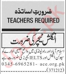Private School jobs advertisement dated about 5 June 2023 in daily Jang Newspaper invites application for the vacant post of ielts teacher, english teacher and teacher in Islamabad, rawalpindi Islamabad Pakistan. Bachelor, Master and MA etc. educational qualification will be preferred.