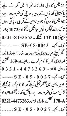 Jang Sunday Classified Ads 4 May 2025 For House Staff