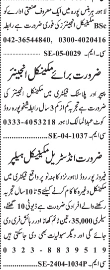 Jang Sunday Classified Ads 4 May 2025 For Manufacturing