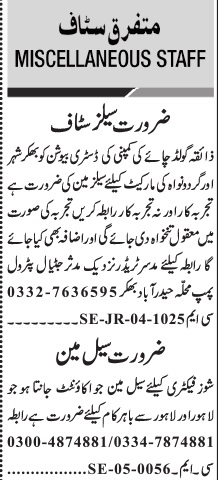 Jang Sunday Classified Ads 4 May 2025 For Sales Staff