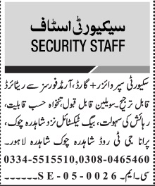Security Company invites applications for job positions advertised in daily Jang dated 5 May 2025 for following vacancies in Shahdara Lahore, lahore Punjab Pakistan.