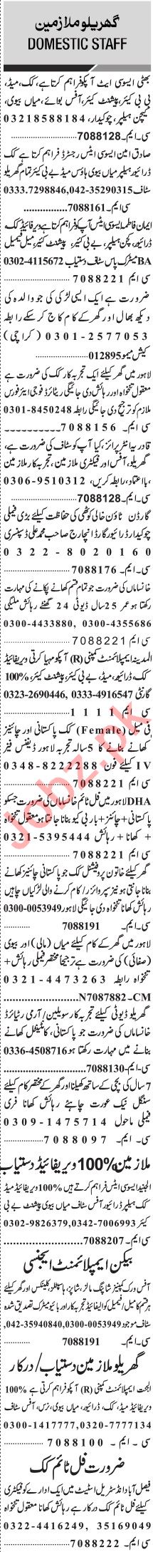 Jang Sunday Classified Ads 4 Oct 2020 For House Staff