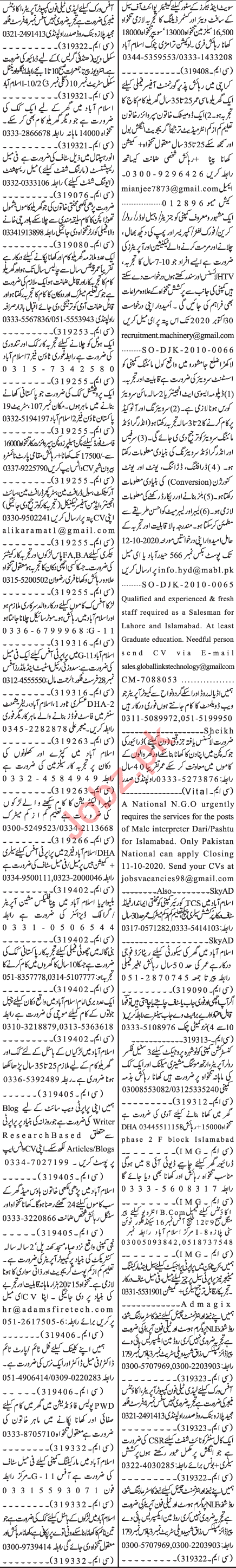 Jang Sunday Classified Ads 4 Oct 2020 For Multiple Staff