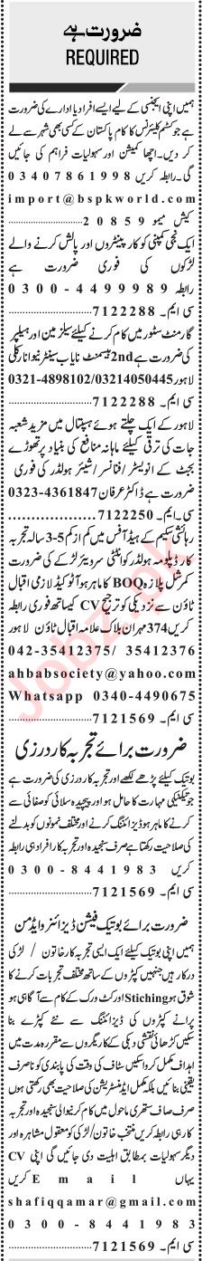 Private Company invites applications for job positions advertised in daily Jang dated 5 September 2022 for following vacancies in Lahore, lahore Punjab Pakistan.
