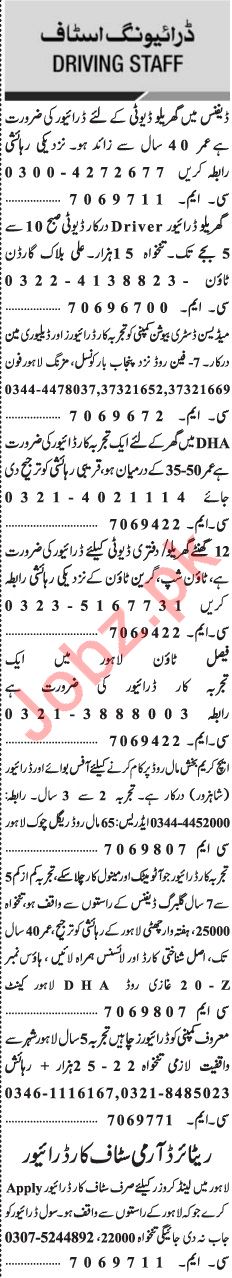 Jang Sunday Classified Ads 4th Aug 2019 For Driving Staff