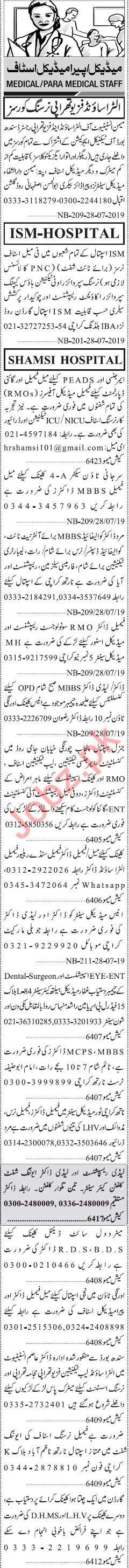 Jang Sunday Classified Ads 4th Aug 2019 For Medical Staff