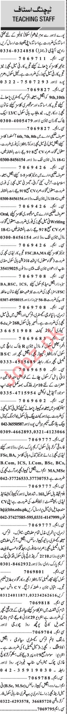 Principal, Vice Principal, Coordinators, Teacher, Junior Teacher, Primary Teacher, Secondary Teacher, Subject Teacher (Maths, Physics, Chemistry, Biology, English, Urdu, Pak Studies & Islamic Studies), Montessori Teacher and Female Teacher needs in well reputed schools.
