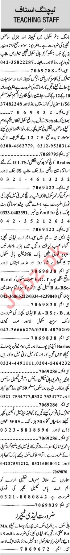 Jang Sunday Classified Ads 4th Aug 2019 For Teaching Staff
