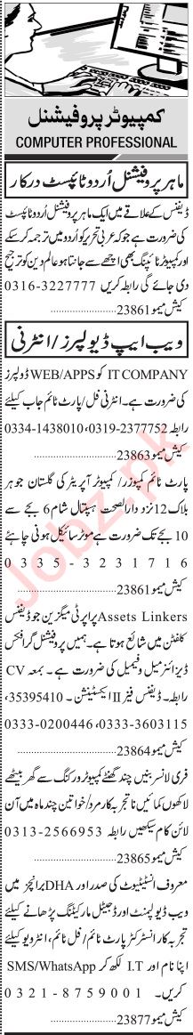 Jang Sunday Classified Ads 5 Feb 2023 For Computer Staff