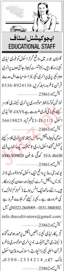 Jang Sunday Classified Ads 5 Feb 2023 for Educational Staff