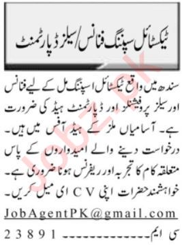Apply at Textile Company latest Classifieds jobs in Finance and departments before closing date which is around March 11, 2023 or as per closing date in newspaper ad. Read complete ad online to know how to apply on latest Textile Company job opportunities.