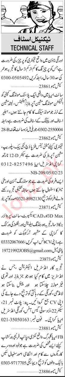 Jang Sunday Classified Ads 5 Feb 2023 For Technical Staff
