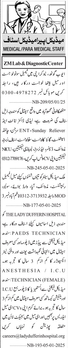 Jang Sunday Classified Ads 5 Jan 2025 for Medical Staff