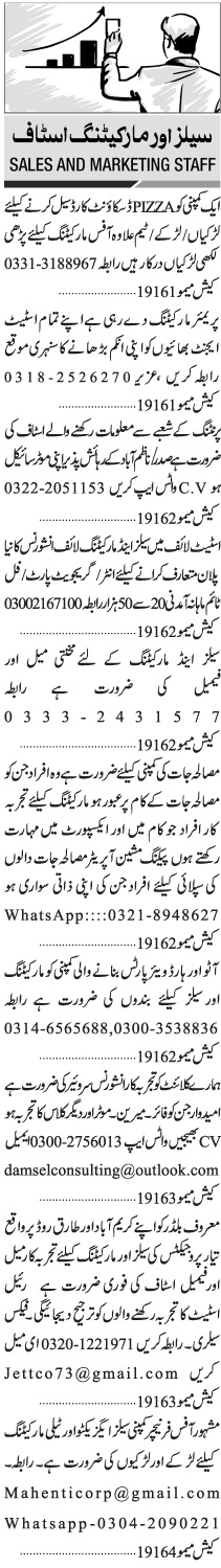 Jang Sunday Classified Ads 5 June 2022 for Sales Staff