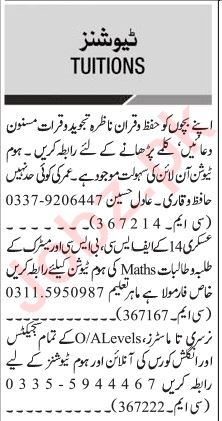 Jang Sunday Classified Ads 5 March 2023 For Home Tutor