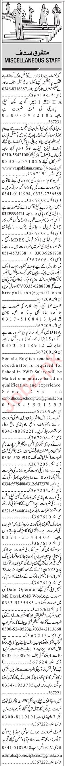 Jang Sunday Classified Ads 5 March 2023 for Multiple Staff