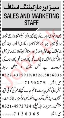 Marketing Company invites applications for job positions advertised in daily Jang dated 6 March 2023 for following vacancies in Lahore, lahore Punjab Pakistan.