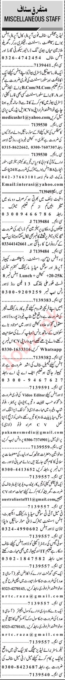 Private Company Lahore, lahore Punjab Pakistan invites applications from eligible candidates for the post of marketing manager, engineer, graphic designer, call operator, manager, cook, civil engineer, distributor, salesman, law officer, store incharge, accountant, office boy, assistant, computer operator, office staff, security guard, office assistant, cashier, social media marketing officer, husband wife, house worker, sales staff, tailor, editor, admin officer, driver, accounts manager, store assistant, social media marketing expert, phone operator, factory worker, editor staff, receptionist, video editor and tailor master as per advertisement of November 6, 2023 published in daily Jang Newspaper. BBA, BA, Middle, Bachelor, I.com, B.com, Matric and Intermediate etc. educational qualification will be preferred.