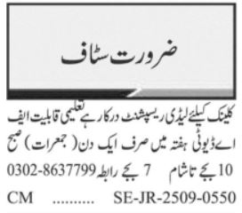 Jang Sunday Classified Ads 5 Oct 2025 For Clinic Staff