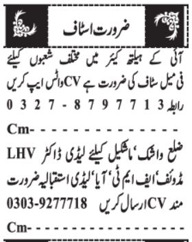 Private Hospital jobs advertisement dated about 6 October 2025 in daily Jang Newspaper invites application for the vacant post of lady receptionist, lhv, aya, midwife, lady doctor, doctor and medical staff in Quetta, quetta Balochistan Pakistan. Bachelor, Matric, MBBS and Intermediate etc. educational qualification will be preferred.